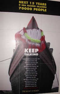 Aside from the exhibits, workshops, talks, theatre, and music, I am most taken with a photo of a boat listing every single Climate Conference of Parties since 1992.