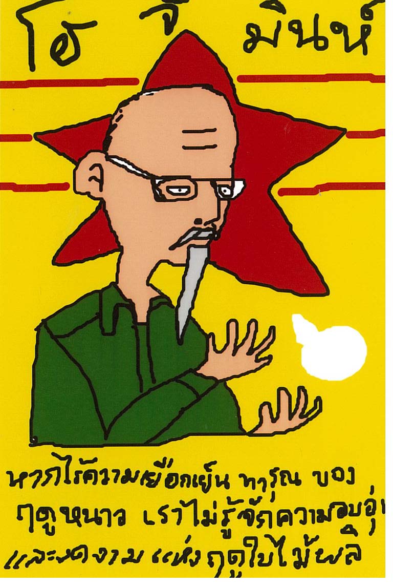 Many items sold along Chiang Mai’s walking street are locally made like this postcard. It is designed by a group of University student. So many kind and style. I picked this one “Ho Chi Minh” as I have heard and read some Great story of Vietnamese who fought for independent and freedom from Great Powers like French and the United State. Recently I also watched movie series “Young Indiana Jones” that some scene featuring young Ho Chi Minh in Paris at the UN-like meeting whereby Young Indiana Jones acted as advisor to the US Envoy.