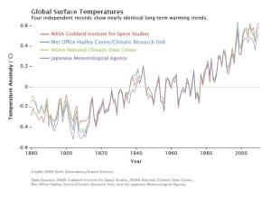 แต่เรื่องที่สำคัญมากกว่าความแตกต่างปีต่อปีคือแนวโน้มระยะยาว (ดูจากกราฟด้านบน) ข้อมูลบันทึกทั้ง 4 เป็นไปในทิศทางเดียวกัน นั่นคือ โลกของเรามีอุณหภูมิเฉลี่ยผิวโลกร้อนขึ้นนับตั้งแต่ทศวรรษ 1880 และช่วงทศวรรษล่าสุดนั้นร้อนที่สุดเท่าที่มีการบันทึกมา