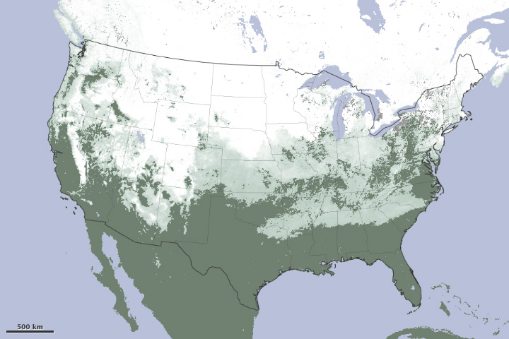 มกราคม 2011 เป็นเดือนแห่งพายุหิมะที่เข้าถาโถมทั่วสหรัฐอเมริกา โดยวันที่ 12 มกราคม ร้อยละ 71 ของประเทศมีหิมะปกคุลม มีขนาดใหญ่ที่สุดเป็นอันดับที่ 5 ในช่วง 45 ปีที่ผ่านมา ภาพข้างต้นเป็นข้อมูลจาก Spectroradiometer (MODIS) บนดาวเทียม NASA Terra (ข้อมูลพื้นที่หิมะปกคลุมรายเดือน) แสดงให้เห็นถึงพื้นที่ที่มีหิมะปกคลุมมากที่สุด จากภาพแสดงให้เห็นว่ามีหิมะปกคลุมทุกรัฐในสหรัฐอเมริกาในเดือนมกราคม ยกเว้นแต่รัฐฟลอริด้า