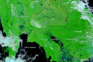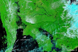 Thailand and Cambodia continued to cope with widespread flooding at the beginning of November 2011. The Moderate Resolution Imaging Spectroradiometer (MODIS) on NASA’s Terra satellite captured the top image on November 1, 2011. For comparison, the bottom image shows the same area three years earlier, on November 12, 2008.