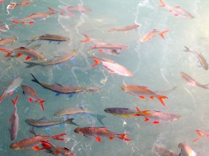 The photo was taken at the spot where I walked over the wooden bridge crossing one of the creeks from the “Fish Cave” or “Tham Plaa” under limestone mountain range that is part of Forest Park along 1095 Highway 17 KM from Mea Hong Son Town Center. The dominant fish species here is “Soro Brook Carp” – October 2012 –