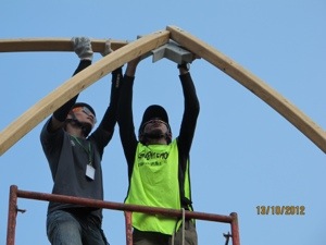 Greenpeace volunteer constructed Climate Rescue Station to launch “Solarising Borobudur” Jogjakarta, Indonesia. October 2012 (Photo : Tara Buakamsri)