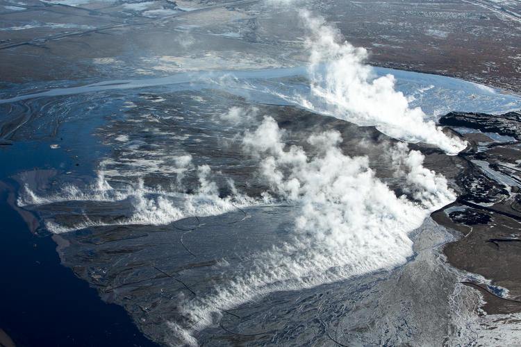 แหล่งทรายน้ำมันในอัลเบอร์ตาซ่อนเร้นจากสายตา หากมองจากทางอากาศ มันคืออุตสาหกรรมขูดรีดธรรมชาติ สกัดน้ำมันจากทราย ระบบนิเวศป่าไม้แถบนี้ต้องสังเวยให้กับการขยายตัวของอุตสาหกรรมนี้