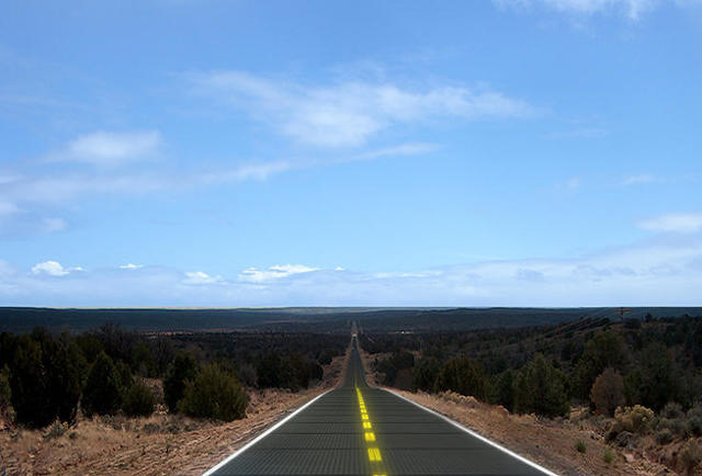 ผู้สร้างโครงการ the Solar Roadways ต้องการเอากระจกที่มีไดโอดปล่อยแสง(LED-lit glass) แบบแข็งแกร่งสุดๆ มาเป็นผิวทางหลวงทุกแห่ง