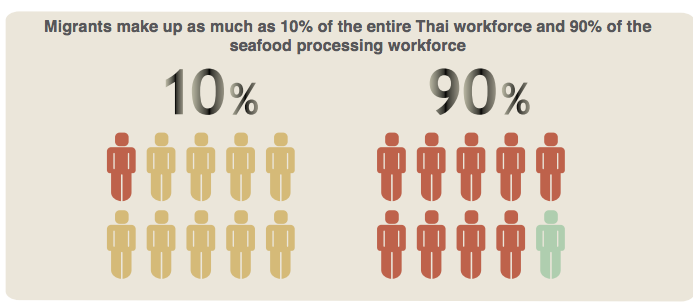 แทนที่จะลงทุนเพิ่มประสิทธิภาพของกระบวนการผลิตหรือจ่ายค่าแรงให้สูงขึ้น เจ้าของเรือประมงได้เอาแรงงานต่างด้าวจากประเทศเพื่อนบ้านที่มีเศรษฐกิจด้อยกว่ามาแทน :