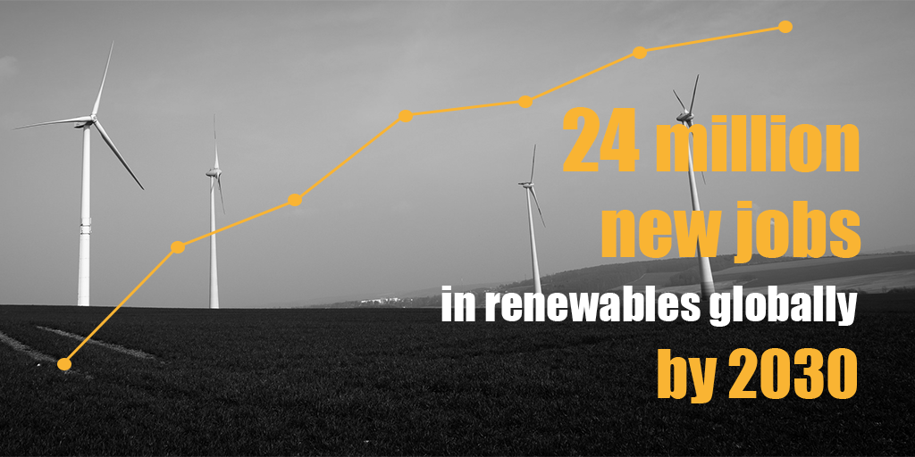 องค์การพลังงานหมุนเวียนระหว่างประเทศ(International Renewable Energy Agency-IRENA) ระบุการลงทุนด้านพลังงานหมุนเวียนจะทำให้เกิดการจ้างงาน 24 ล้านตำแหน่งภายในปี 2030