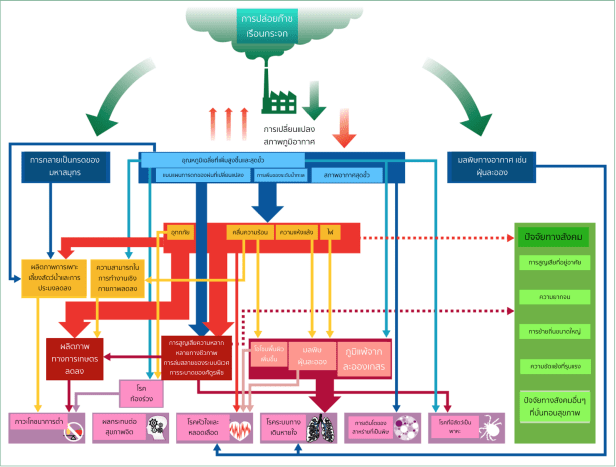 4. การรับมือกับผลกระทบจากการเปลี่ยนแปลงสภาพภูมิอากาศเป็นโอกาสครั้งใหญ่ที่สุดด้านสาธารณสุขโลกแห่งศตวรรษที่ 21 เป็นข้อสรุปในรายงานวิจัย “The Lancet Countdown: tracking progress on health and climate change” ซึ่งเป็นงานวิจัยพหุสาขาวิชาในระดับนานาชาติโดยเป็นความร่วมร่วมมือระหว่างสถาบันวิชาการและผู้ปฏิบัติงานด้านสาธารณสุขทั่วโลก รายงานวิจัยนี้ทำการติดตามผลกระทบสุขภาพของอันตรายจากสภาพอากาศสุดขั้ว การฟื้นคืนจากผลกระทบและการปรับตัวด้านสุขภาพ ตลอดจนผลประโยชน์ร่วมในด้านสุขภาพจากมาตรการลดการปล่อยก๊าซเรือนกระจก