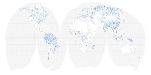 แผนที่ด้านล่างแสดงพื้นผิวของแม่น้ำในลุ่มน้ำทั่วโลก แม่น้ำพรหมบุตรในอินเดียและบังคลาเทศ แม่น้ำอเมซอนในบราซิล และแม่น้ำเลน่าในรัสเซียเป็นหนึ่งในแม่น้ำที่กว้างที่สุด และเครือข่ายแม่น้ำครอบคลุมพื้นผิวที่กว้างที่สุด