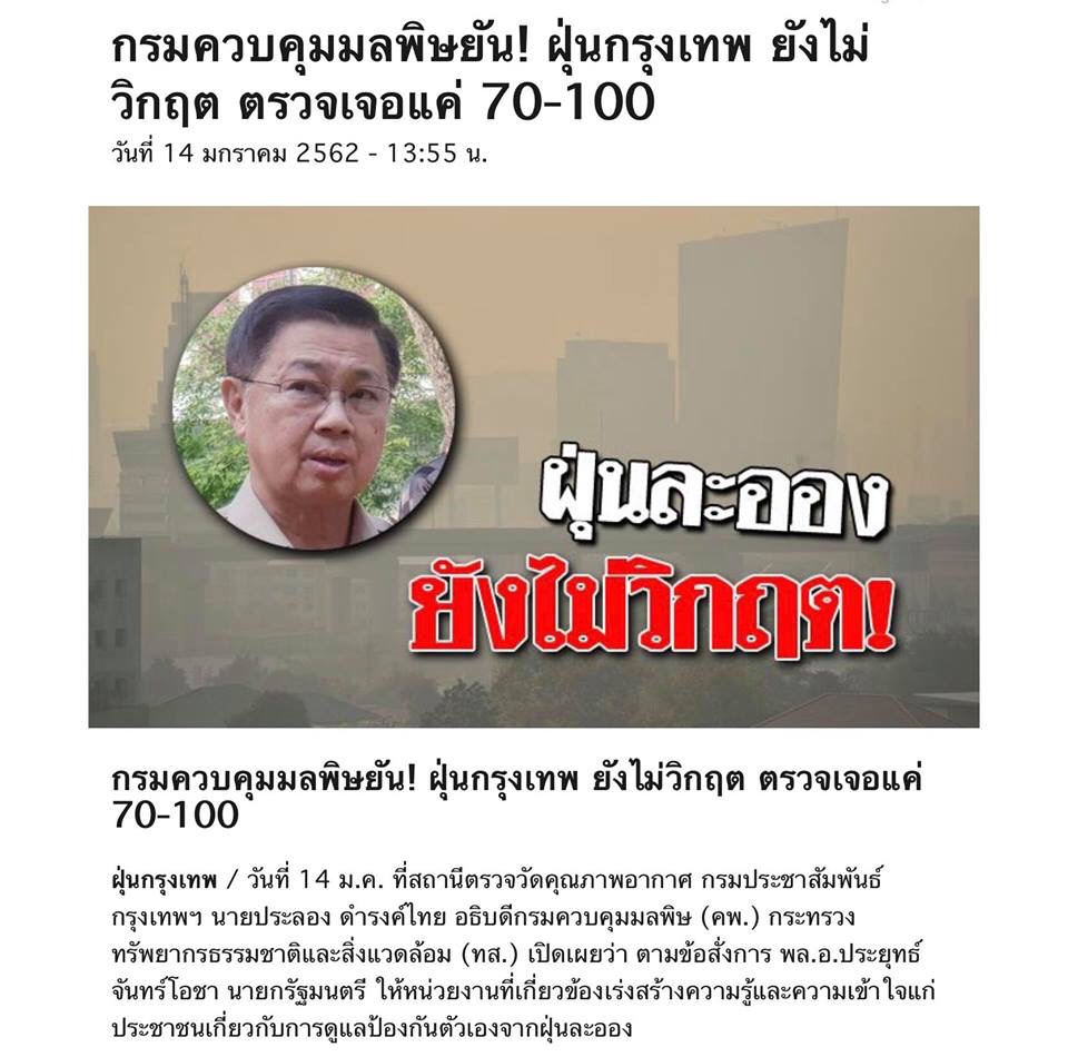 เมื่ออ่านรายงาน “โครงการศึกษาแหล่งกำเนิดและแนวทางการจัดการฝุ่นละอองขนาดไม่เกิน 2.5 ไมครอนในพื้นที่กรุงเทพและปริมณฑล” ที่จัดทำโดยกรมควบคุมมลพิษ https://bit.ly/2MLTDOO เราจะพบว่า เรามีแทบทุกอย่างที่พร้อมรับมือกับวิกฤตมลพิษทางอากาศที่เกิดขึ้น( Note : ที่เรียกว่าวิกฤตนั้นดูจากวันที่เกินค่ามาตรฐานเฉลี่ย 24 ชั่วโมงในเดือนมกราคม 2562 ที่ผ่านมา https://bit.ly/2WDDm2U)