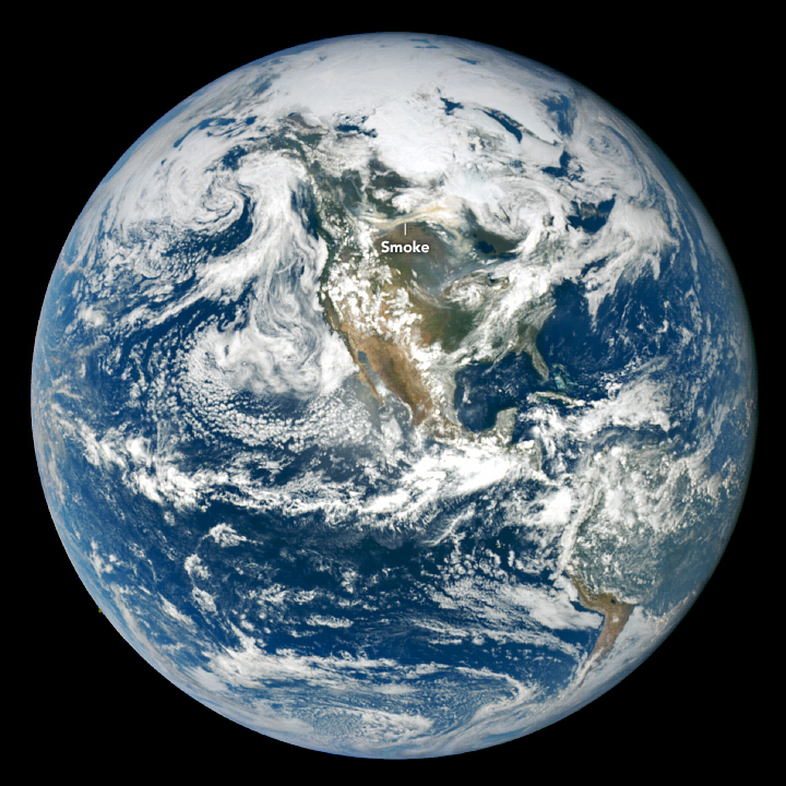 หมอกควันจากไฟป่าขนาดใหญ่ในพื้นที่ต่างๆของแคนาดานั้นมีความหนาทึบและแผ่กระจายกว้างออกไปโดยสามารถเห็นได้ชัดเจนในระยะ 1.5 ล้านกิโลเมตร(1 ล้านไมล์) จากผิวโลก ภาพจากกล้อง Earth Polychromatic Imaging Camera (EPIC) บนดาวเทียม DSCOVR ของ NOAA จับภาพนี้ไว้ได้เมื่อวันที่ 30 พฤษภาคม 2562 เมื่อกระแสหมอกควันกระจายออกไปทางตะวันออกทั่วทั้งรัฐอัลเบอร์ตา รัฐซัสแคตเชวัน และรัฐแมนิโทบา