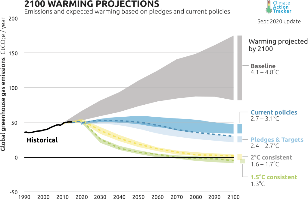 Bill Hare จาก Climate Analytics องค์กรพันธมิตรของ Climate Action Tracker กล่าวว่า “นี่อาจเป็นจุดพลิกผันทางประวัติศาสตร์ : ด้วยการเลือกตั้งของ Biden จีน สหรัฐอเมริกา สหภาพยุโรป ญี่ปุ่น เกาหลีใต้ซึ่งเป็นสองในสามของเศรษฐกิจโลกและกว่า 50% ของการปล่อยก๊าซเรือนกระจกทั่วโลก รวมกันจะเป็นคำมั่นสัญญาที่นำไปสู่การลดการปล่อยก๊าซเรือนกระจกสุทธิเป็นศูนย์ภายในกลางศตวรรษ”