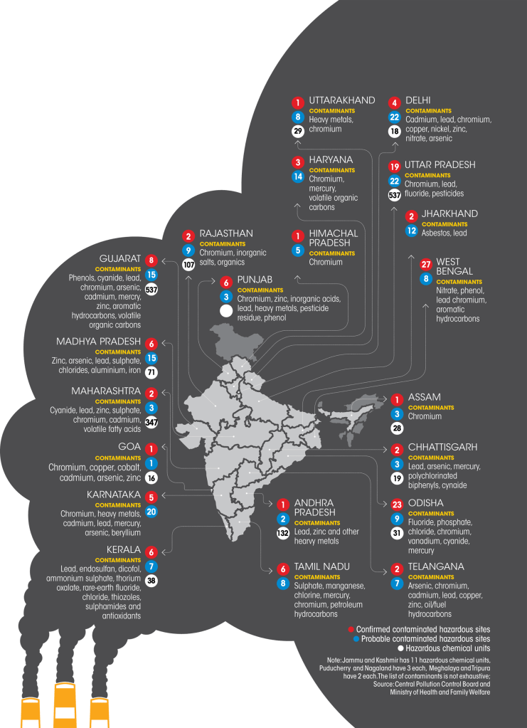 จากการขยายตัวของอุตสาหกรรมในระดับสูง อินเดียต้องเผชิญอุบัติภัยทางอุตสาหกรรมและการสูญเสียชีวิตที่เกี่ยวข้องเพิ่มขึ้น ในช่วงสองปี (ปี 2557-2559) อุบัติภัยในโรงงานอุตสาหกรรมทำให้คนงานเสียชีวิต 3,562 คนและบาดเจ็บกว่า 51,000 คน จากข้อมูลของกระทรวงแรงงานและการจ้างงาน หมายความว่ามีผู้เสียชีวิต 3 รายและบาดเจ็บ 47 รายทุกวัน