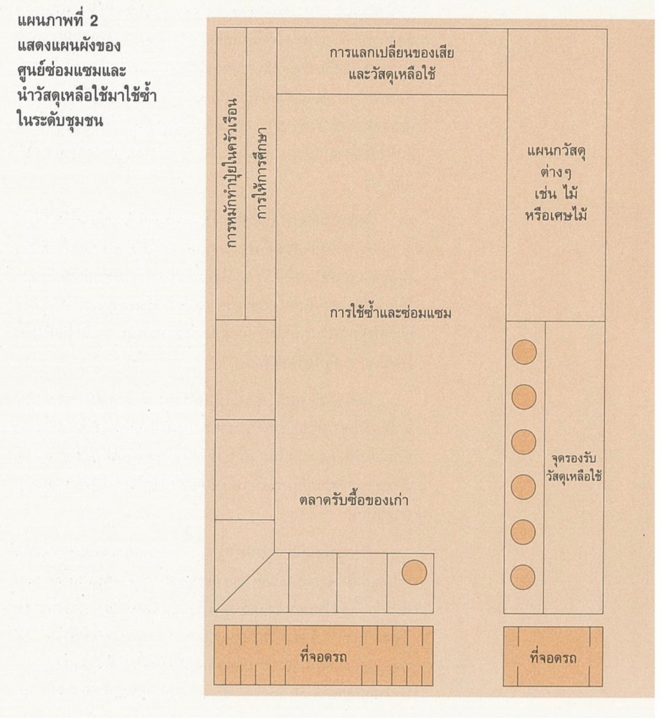 นอกจากนี้ ศูนย์ฯยังอาจใช้เป็นที่รวบรวมขยะประเภทสีทาบ้าน น้ำมันชักเงา หรือน้ำยาทำความสะอาด ซึ่งนำมาใช้ทั้งในกิจการซ่อมแซมสิ่งของภายในศูนย์ ฯ หรือให้คนในชุมชนนำไปใช้กิจกรรมประเภทการลงแขกทาสีบ้าน ศูนย์ฯยังใช้เป็นสถานที่พบปะพูดคุยของชุมชน