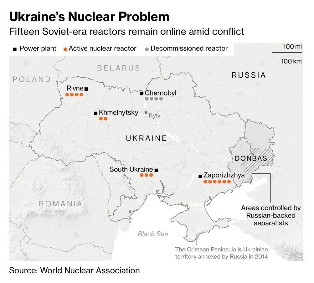 เตาปฏิกรณ์นิวเคลียร์ที่ผลิตไฟฟ้าในยูเครนเหล่านี้อัดแน่นไปด้วยเชื้อเพลิงนิวเคลียร์สดใหม่ที่มีศักยภาพในการเปลี่ยนความขัดแย้งในภูมิภาคให้กลายเป็นฝันร้ายระดับทวีป ทั้งจรวด ขีปนาวุธ การป้องกันการโจมตีทางอากาศหรือการก่อวินาศกรรมที่ผิดพลาด อาจทำให้เกิดเหตุการณ์ที่เกี่ยวข้องกับความปลอดภัยทางนิวเคลียร์ได้