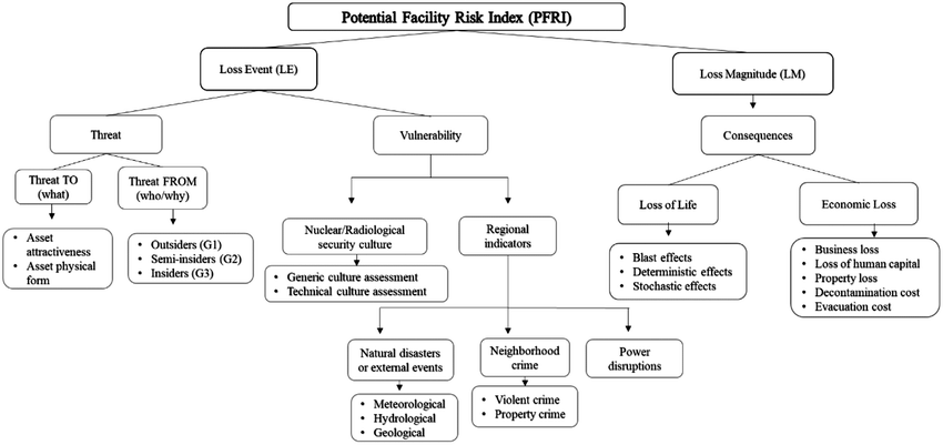 แม้ว่าจะใช้แบบจำลองความเสี่ยงด้านความมั่นคงทางนิวเคลียร์ที่มีอยู่ แต่ก็ไม่สามารถพิจารณาทุกแง่มุมของภัยคุกคาม ช่องโหว่ และผลที่ตามมาอย่างเฉพาะเจาะจง เช่น ดัชนีความเสี่ยงที่อาจเกิดขึ้น(the Potential Facility Risk Index – PFRI) โดยที่ความเสี่ยงนั้น มีลักษณะเฉพาะสำหรับโครงการจัดตั้งเครื่องปฏิกรณ์นิวเคลียร์วิจัย อำเภอองครักษ์ จังหวัดนครนายกโดยขึ้นอยู่กับประเภทของโครงสร้างพื้นฐาน สถานที่ตั้งของโครงสร้างพื้นฐาน ประเภทสินทรัพย์ ที่มีอยู่ในโครงสร้างพื้นฐาน และปัจจัยมนุษย์ (เช่น วัฒนธรรมความปลอดภัย)