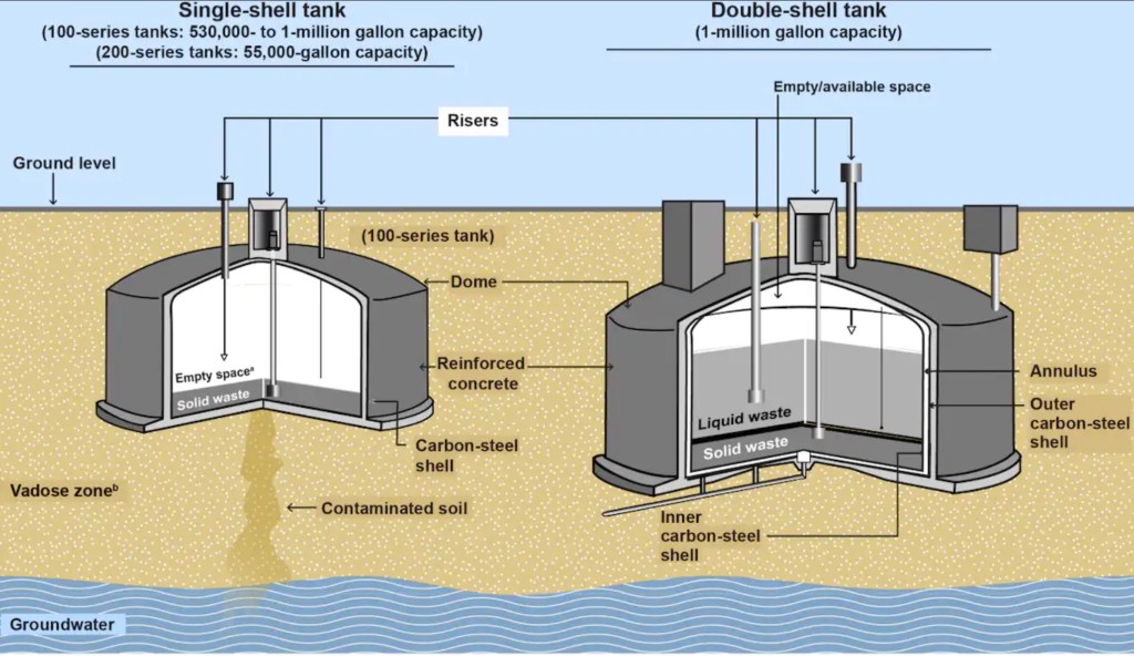 การสกัดพลูโทเนียมออกจากเชื้อเพลิงที่ผ่านการฉายรังสี ซึ่งเป็นกิจกรรมที่เรียกว่ากระบวนการแปรรูปใหม่ ทำให้เกิดของเสียที่เป็นของเหลวจำนวน 56 ล้านแกลลอนซึ่งปนเปื้อนรังสีและสารพิษจากสารเคมี ของเสียถูกเก็บไว้ในถังใต้ดินที่ออกแบบให้มีอายุ 25 ปี โดยตั้งอยู่บนสมมติฐานว่าจะมีการพัฒนาวิธีการกำจัดในภายหลัง