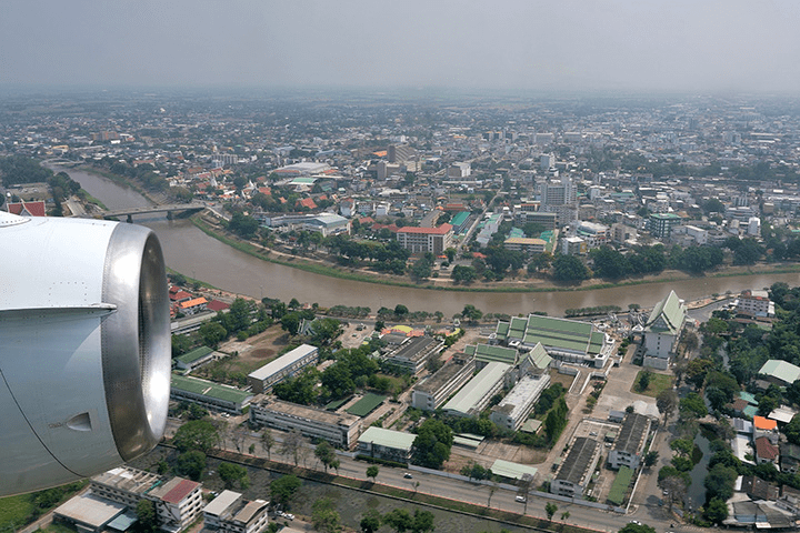 อย่างไรก็ตาม การท่องเที่ยวอาจได้รับผลกระทบจากปัญหาที่เห็นได้ชัดเจนมากขึ้นสําหรับเมืองที่เฟื่องฟู นั่นคือ ท้องฟ้าที่หม่นสลัว ในเดือนที่แห้งแล้งช่วงเดือนมีนาคมและเมษายน ระดับฝุ่นละอองในอากาศจะทะยานขึ้น ควันจากไฟพืชตามฤดูกาลในหุบเขาและไฟป่าในภูเขาโดยรอบผสมกับการปล่อยมลพิษในเมืองจากการจราจร อุตสาหกรรม และแหล่งอื่นๆ ทําให้เกิดฝุ่นที่สะสมอยู่ในหุบเขาแม่น้ําปิงและหุบเขาอื่นๆ ในภูมิภาค