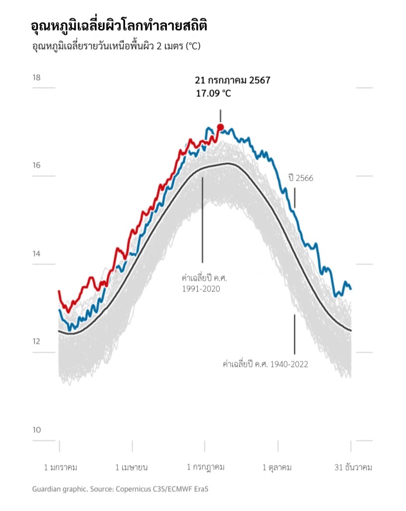 สรุปความจาก https://www.theguardian.com/environment/article/2024/jul/23/world-temperature-records-shattered-hottest-day-climate-crisis?CMP=Share_iOSApp_Other