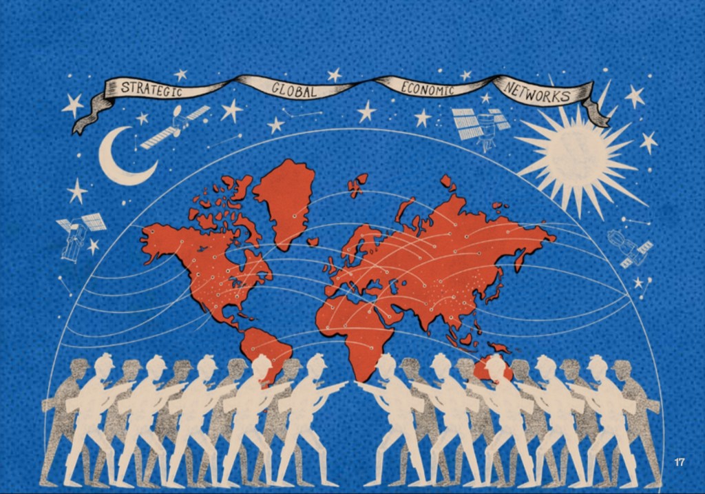 การแข่งขันทางภูมิรัฐศาสตร์ในปัจจุบันได้ทวีความรุนแรงขึ้นจนกลายเป็น สงครามเย็นครั้งที่สอง ซึ่งเป็นความขัดแย้งที่ฝังรากลึกและส่งผลกระทบในระดับสังคม โดยมีแนวโน้มว่าจะไม่สามารถหาทางออกได้ในเร็ววัน อย่างไรก็ตาม ต่างจากสงครามเย็นครั้งแรก สหรัฐฯ ไม่สามารถหวังที่จะ “สกัดกั้น” (contain) จีนในเชิงดินแดนได้อีกต่อไป เพราะจีนได้กลายเป็นศูนย์กลางที่ขาดไม่ได้ของเศรษฐกิจโลก—ตัวอย่างเช่น ในปี 2024 จีนคิดเป็นเกือบ 35% ของการผลิตภาคอุตสาหกรรมทั่วโลก แต่เมื่อสหรัฐฯ ตัดสินใจยุติการมีส่วนร่วมทางเศรษฐกิจเพิ่มเติมกับจีน จึงจำเป็นต้องมีแนวทางเชิงยุทธศาสตร์ใหม่ สมรภูมิการแข่งขันในยุคนี้ไม่ได้อยู่ที่ดินแดน แต่อยู่ที่การควบคุมเครือข่ายเศรษฐกิจระดับโลก ตั้งแต่ ห่วงโซ่อุปทานเซมิคอนดักเตอร์ การผลิตรถยนต์ไฟฟ้า (EV) แพลตฟอร์มดิจิทัล โครงสร้างพื้นฐานด้านคมนาคมขนส่ง ไปจนถึงระบบชำระเงินทางการเงิน การควบคุมเครือข่ายข้ามชาติเหล่านี้หมายถึง อำนาจที่สามารถขยายต่อเนื่องไปได้ตลอดศตวรรษนี้ สหรัฐฯ จีน และมหาอำนาจระดับภูมิภาค ต่างกำลังขยายบทบาทของตนในฐานะ ผู้กำหนดทิศทางเศรษฐกิจ โดยแข่งขันกันเพื่อกำหนด ภูมิศาสตร์ของเครือข่ายเหล่านี้ สร้างกฎเกณฑ์สำหรับผู้เข้าร่วม วางกำแพงกีดกันคู่แข่ง และควบคุมจุดยุทธศาสตร์สำคัญที่สุดของเครือข่าย เราเรียกปรากฏการณ์นี้ว่า “ภูมิรัฐศาสตร์แบบทุนนิยมโดยรัฐ” (state-capitalist geopolitics)