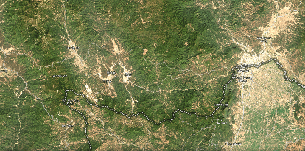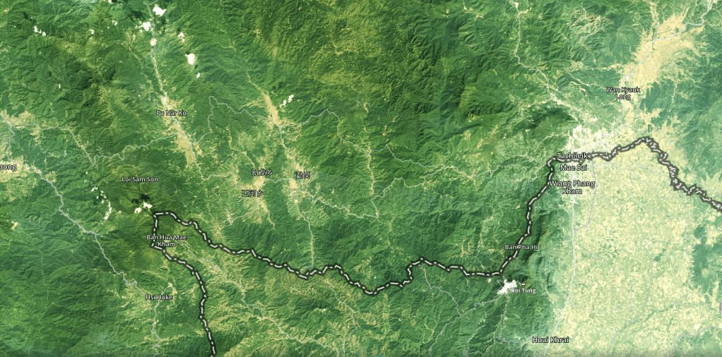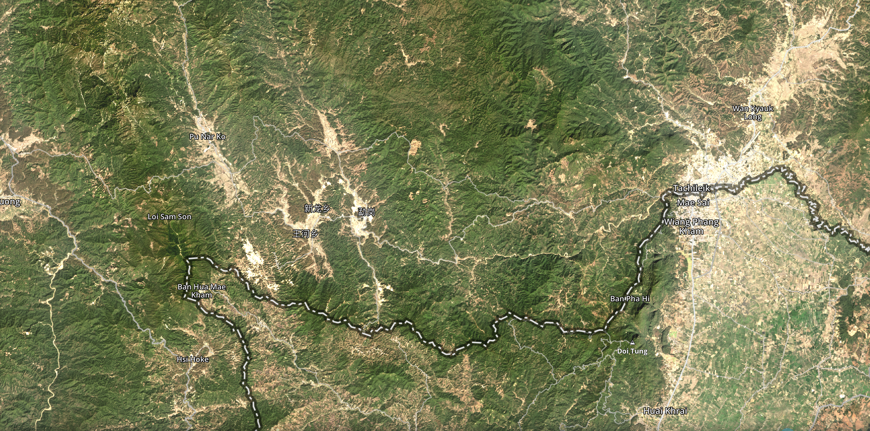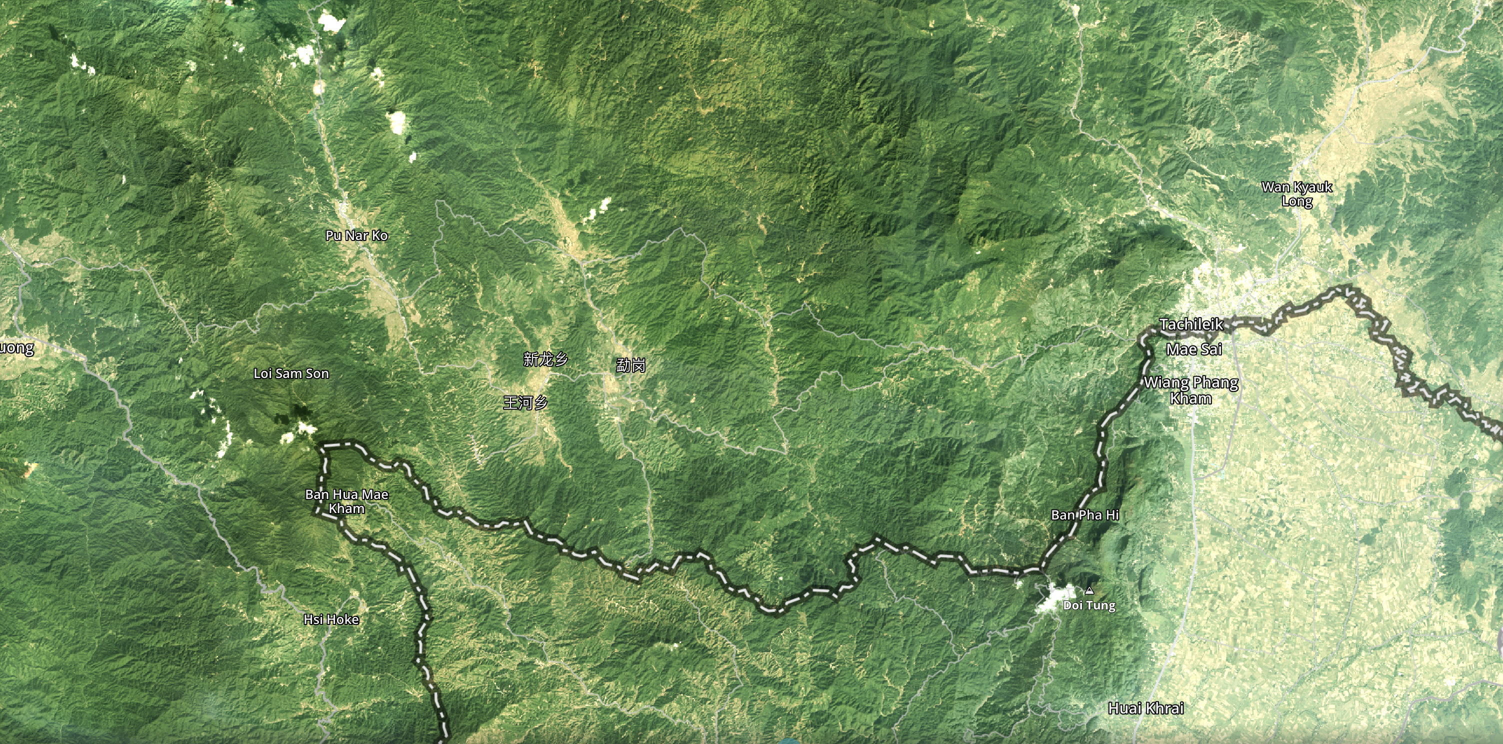 แผนที่ด้านบนมาจากแพลทฟอร์ม Planet Explorer เปรียบเทียบการเปลี่ยนแปลงพื้นที่ลุ่มน้ำแม่สายในเขตรัฐฉาน เดือนธันวาคม 2017 และ เดือนกุมภาพันธ์ 2525