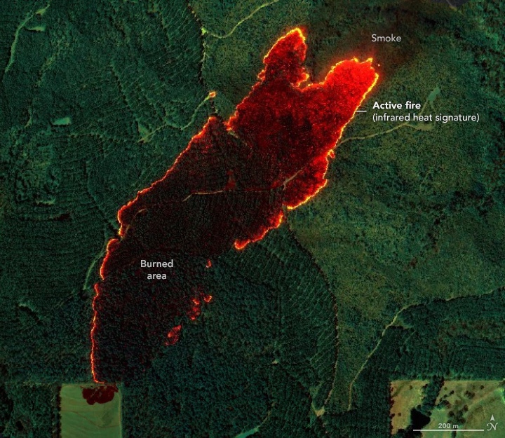 อีธาน บาร์เร็ตต์ นักวิเคราะห์ไฟป่าประจำแผนกป้องกันป่าไม้ของคณะกรรมาธิการป่าไม้รัฐแอละแบมากล่าวว่า Fire 2400 nm Quicklook เป็นแผนที่ที่เจ้าหน้าที่ภาคสนามชื่นชอบมากที่สุด การมองเห็นแนวไฟจากมุมสูงช่วยให้เจ้าหน้าที่สามารถกำหนดตำแหน่งส่งรถแทรกเตอร์ตัดแนวกันไฟได้อย่างมีประสิทธิภาพ
