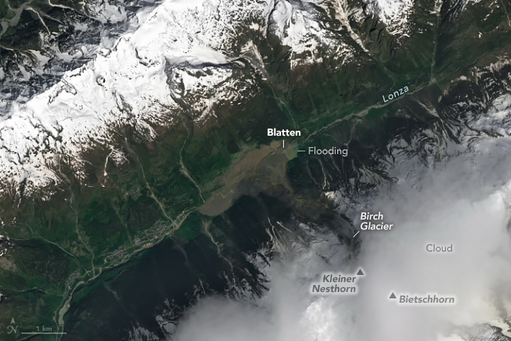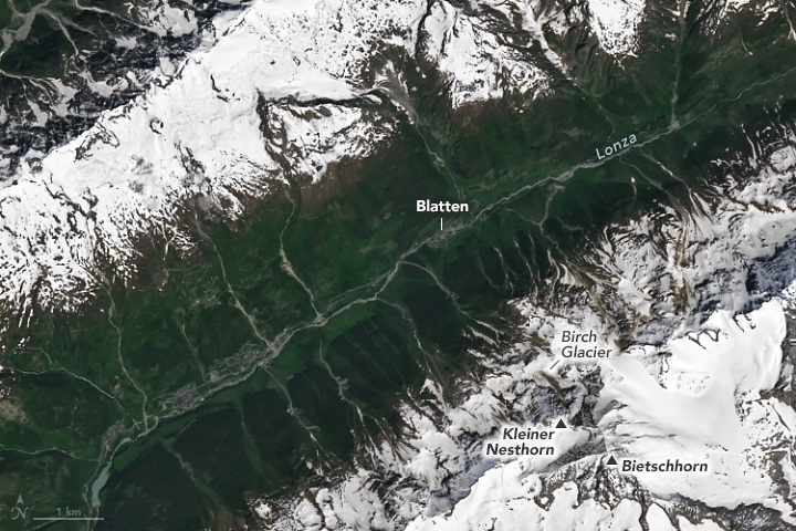 ช่วงบ่ายของวันที่ 28 พฤษภาคม 2025 เกิดหิมะถล่มขนาดใหญ่จากธารน้ำแข็งเบิร์ช (Birchgletscher) ทางตะวันตกเฉียงใต้ของประเทศสวิตเซอร์แลนด์ มวลหินและน้ำแข็งถาโถมลงสู่หุบเขาเบื้องล่าง ฝังกลบหมู่บ้านแบลตเทิน (Blatten) เกือบทั้งหมู่บ้าน และปิดกั้นทางน้ำของแม่น้ำลอนซา (Lonza) จนทำให้น้ำเอ่อล้นท่วมพื้นที่
