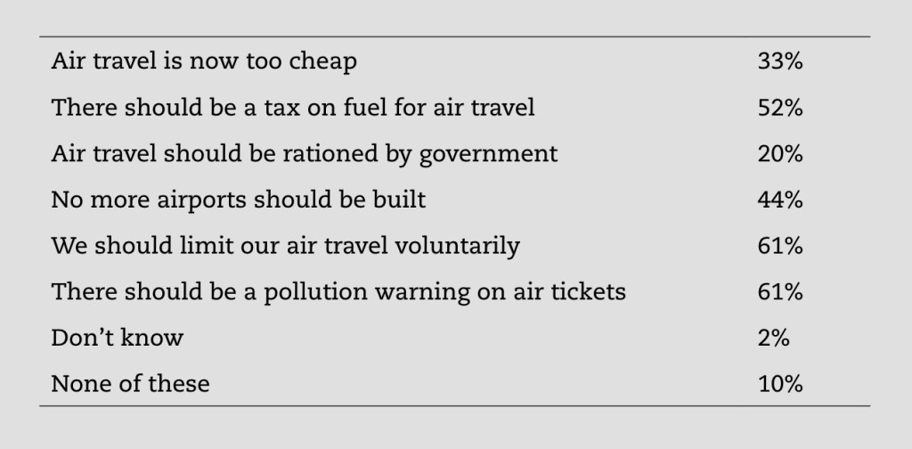 องค์ประกอบของ CAMPCAT ควรผ่านการวิจัยไม่ใช่การเดา แม้ว่าองค์ประกอบ “P” (Programme) จะเป็นสิ่งที่องค์กรกำหนดเองได้ ตัวอย่างเช่น ในปี 2005 CDSM และ Campaign Strategy ได้ทำการสำรวจทัศนคติของสาธารณชนต่อการเดินทางทางอากาศให้กับ Greenpeace UK เราถามผู้ตอบว่า: “Greenpeace เชื่อว่ามลพิษจากเครื่องบินเป็นปัจจัยสำคัญที่ทำให้เกิดการเปลี่ยนแปลงสภาพภูมิอากาศ คุณเห็นด้วยกับข้อใดต่อไปนี้?” ผลลัพธ์เป็นไปตามที่แสดงในตาราง