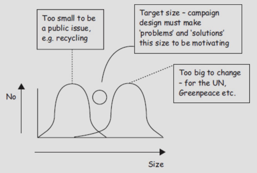 งานวิจัยช่วงปี 1990 เกี่ยวกับกลุ่มผู้สนับสนุน Greenpeace ในสหราชอาณาจักรเผยให้เห็น “หลุมดำทางแรงจูงใจ” ที่ทำให้แคมเปญหลายแคมเปญตัดขาดจากการสนับสนุน ผู้ที่สนใจประเด็นสิ่งแวดล้อมกลับรู้สึกว่าแคมเปญเหล่านั้นไม่น่าดึงดูด