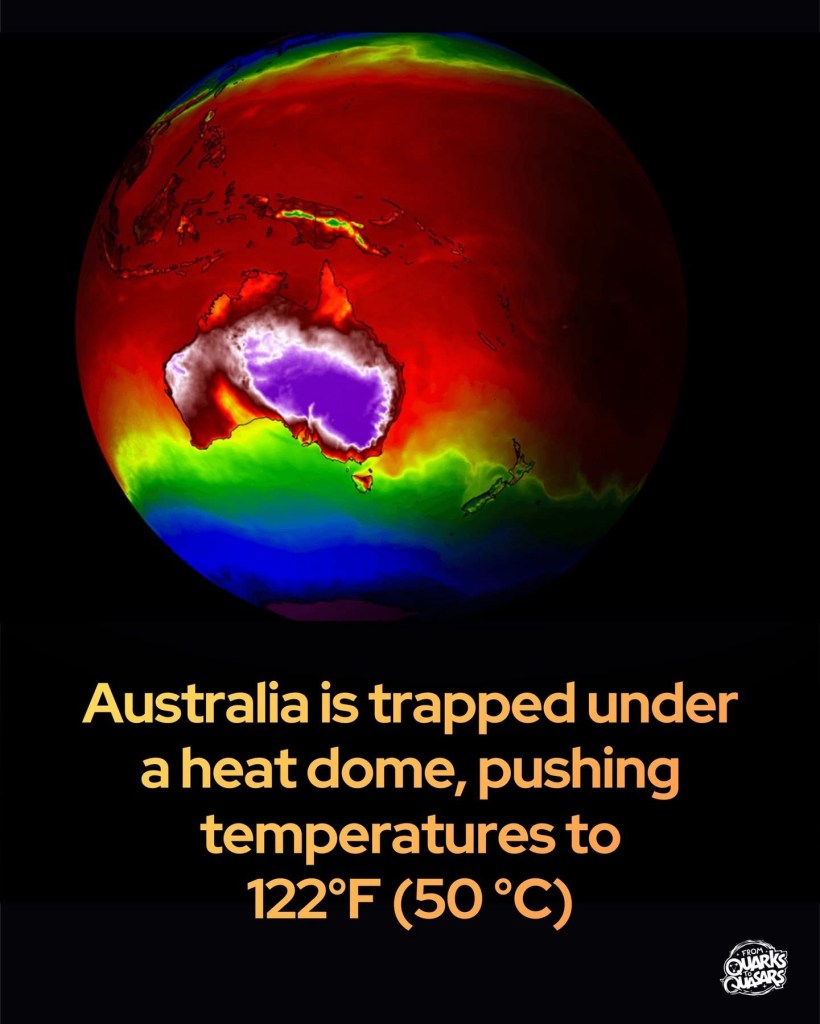 ปรากฏการณ์สภาพอากาศขนาดใหญ่ที่เรียกว่าโดมความร้อนได้ปิดคลุมทั้งทวีป ราวกับผนึกออสเตรเลียไว้ ส่งให้อุณหภูมิพุ่งทะยานไปใกล้ระดับร้อนระอุ 122 องศาฟาเรนไฮต์ (50 องศาเซลเซียส)